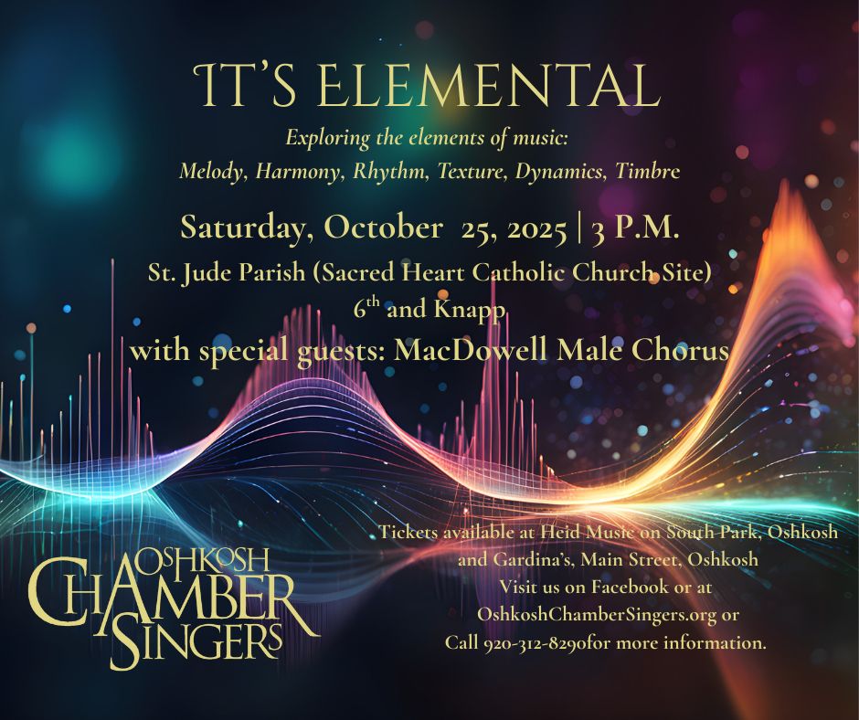 October 25, 2025 @ 3pm Concert in Oshkosh with Oshkosh Chamber Singers at Sacred Heart Church, 519 Knapp St, Oshkosh, WI 54902 (tickets available at the door)