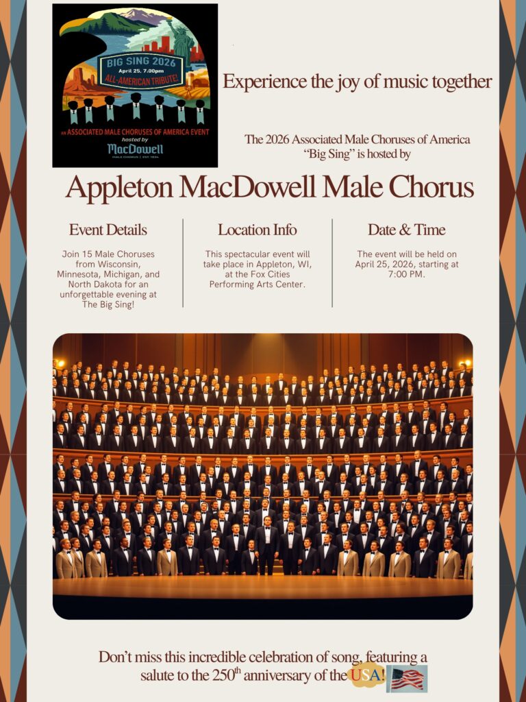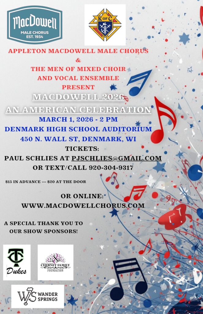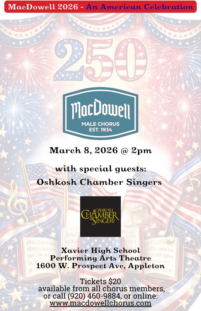 Please be advised that cur8.com is the only official seller of Appleton MacDowell Male Chorus tickets other than our members. Please check your confirmation email from cur8.com to verify that the dates and times of the performance are correct. Ticket prices do not include service fees on credit card purchases. These fees are established by cur8 and are nonrefundable. There are no added fees for ticket orders paid with cash or check.